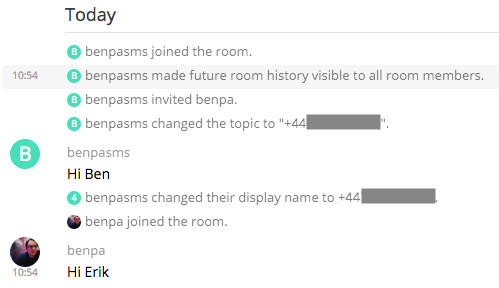 SMSMatrix now has a room (#smsmatrix:matrix.org). SMSMatrix is a simple bridge between Matrix and SMS, developed by tijder. You install an android app and register a bot account which will invite you to direct chats under the name of anyone who sends you an SMS, which will then act as a normal SMS conversation.