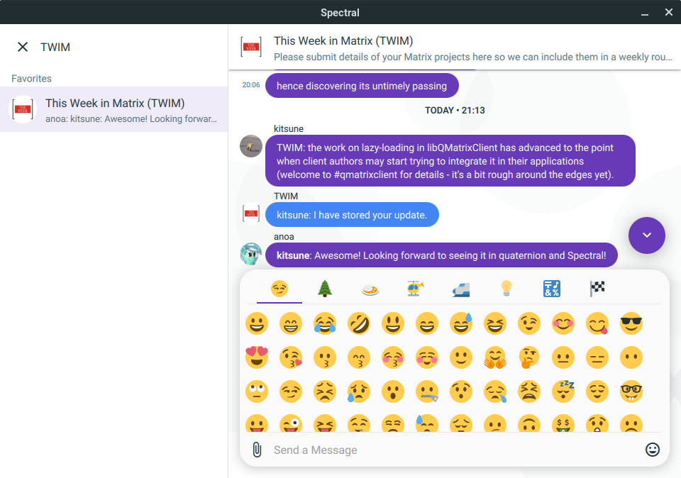 If it didn't seem that kitsune was busy enough, he also announced translations for Quaternion (the original client based on libQMatrixClient):