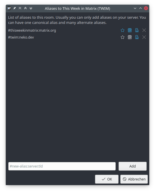 - Also added is support for markdown and HTML in room topics, and some tweaks to the Widgets UI here and here.
