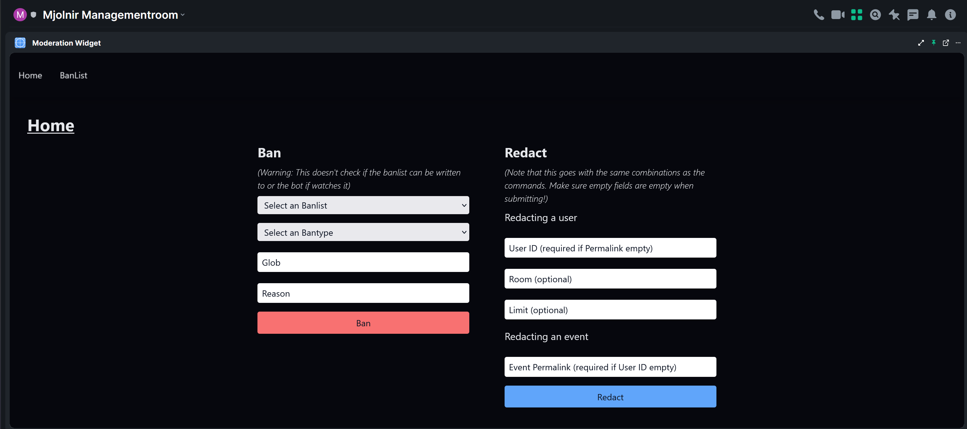 - Added support for a state event which tells the widget about "who is the bot?" and "which lists does this bot monitor?" Which also allows you to use the widget without being in the banlist room yourself. (See https://github.com/MTRNord/matrix-moderation-widget#use-a-state-event-to-allow-showing-relevant-lists-only-in-the-dropdown for more information)