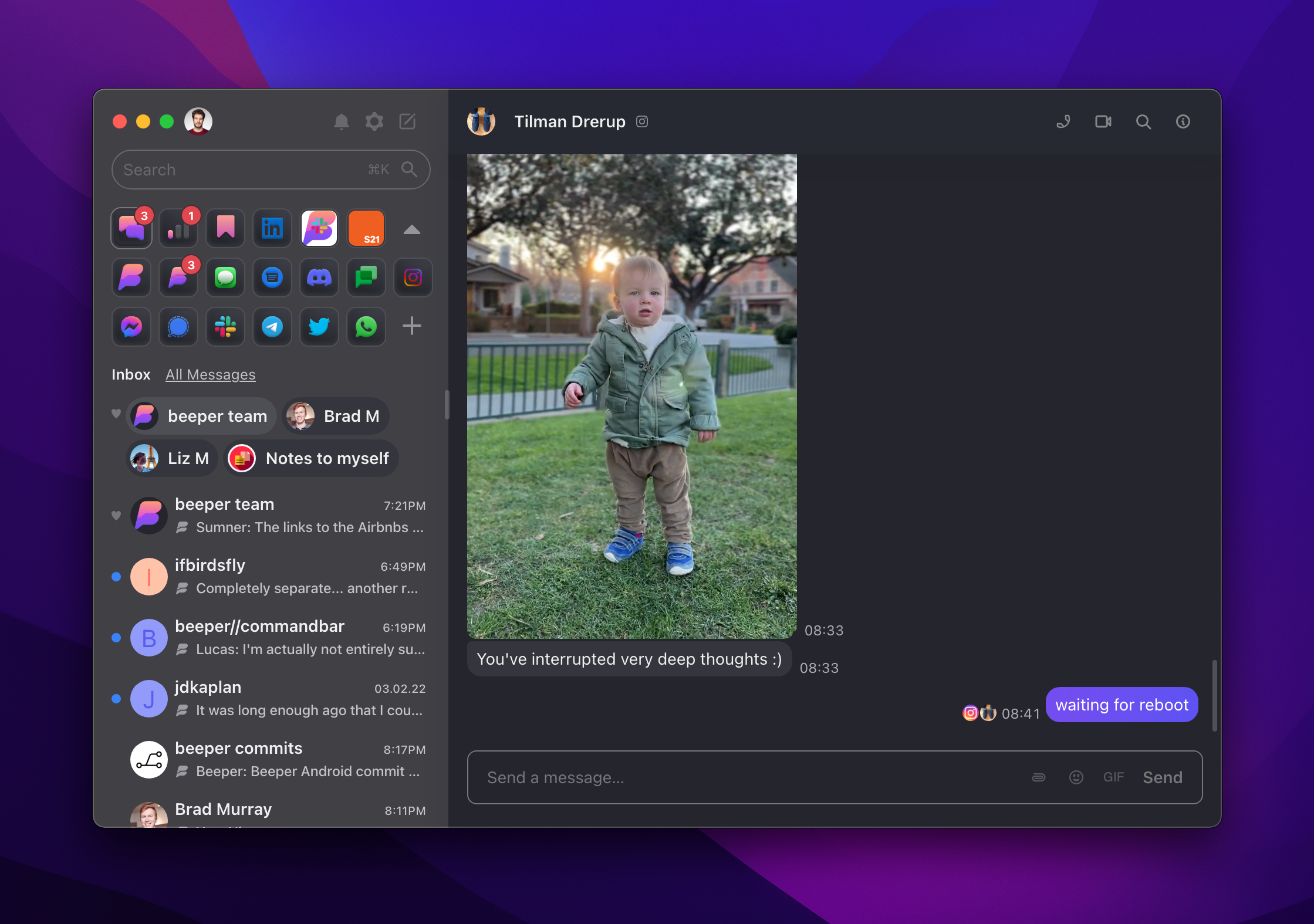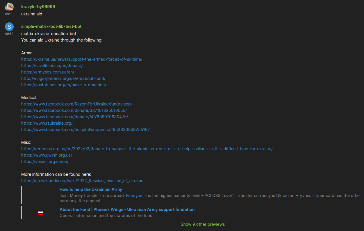 This post is just a milestone update, but it also serves as a reminder that running your own server/bridges is also possible. In fact, it's even recommended to have better control over your own data and avoid latency issues that large providers, like t2bot.io, can unintentionally introduce. Synapse is relatively easy to set up with minimal sysadmin knowledge (guide), and there's always paid offerings like Element Matrix Services (for home and also for fun) and Beeper for a richer bridging experience than t2bot.io can feasibly provide.