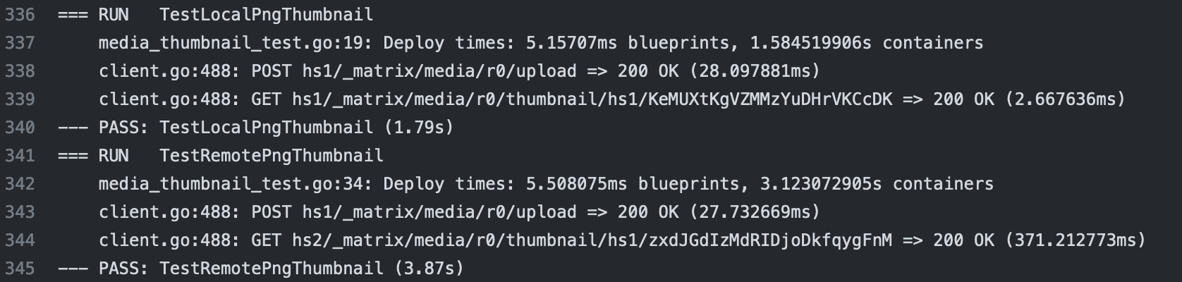 I have been asked by numerous people over months if there are any kind of graphs comparing Synapse and Dendrite. Up until now, my answer has been "as far as I know, no". However, this got me thinking whether I can use Complement to engineer some kind of performance testing infrastructure. After hacking on it for a day or two, I can now share some of the work I've done in this area. There now exists two new binaries in the Complement repo: perftest and perfgraph. The former will run some tests and output a