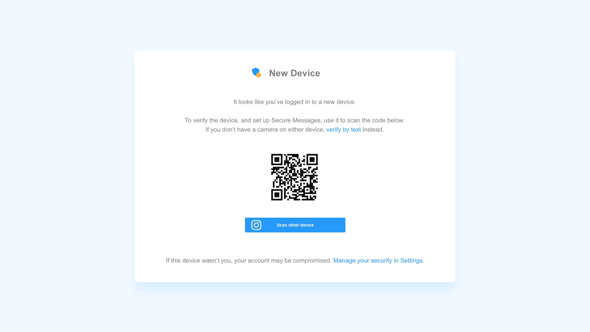 Gone are the days of every person you talk to having to independently verify your new device upgrade. Like cross-signing, you can verify a device by scanning a QR code or comparing a short text string.