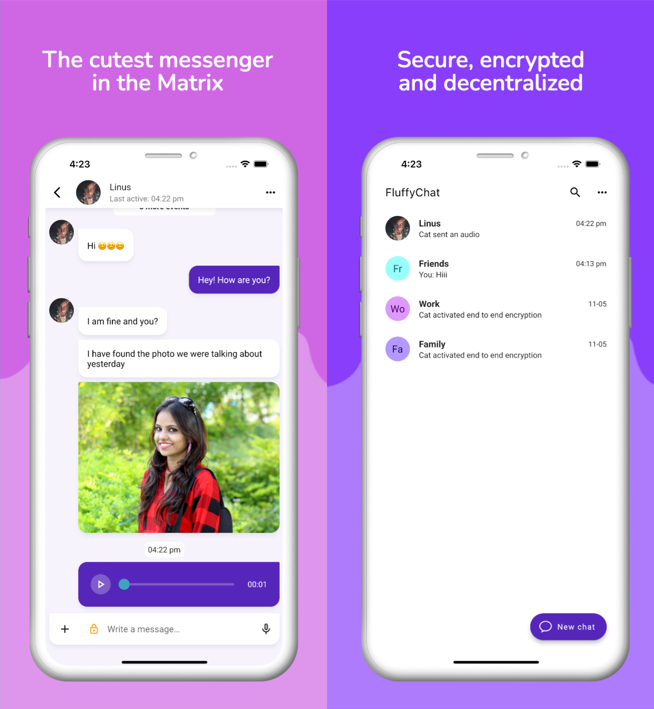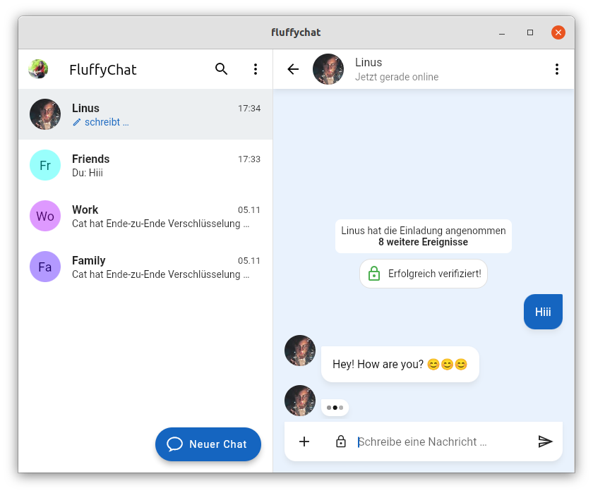 Today we have released FluffyChat 1.0.0 with a whole new design, a lot of bug fixes and huge performance improvements.