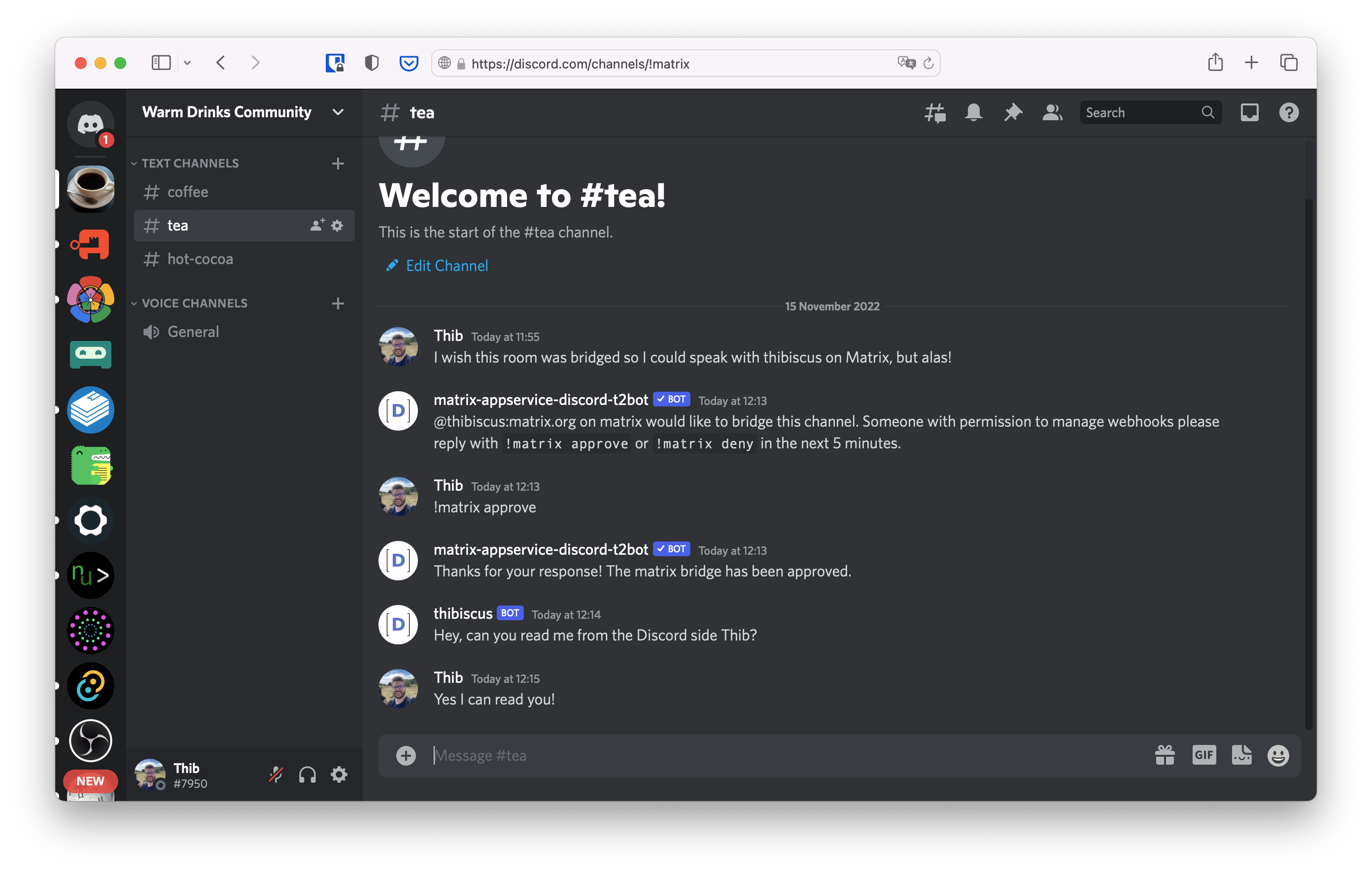 Finally, if you get your own Matrix instance, you can deploy your own bridges too and you should see a general improvement in performance over matrix.org which can sometimes be a bit busy. More information in the dedicated section.