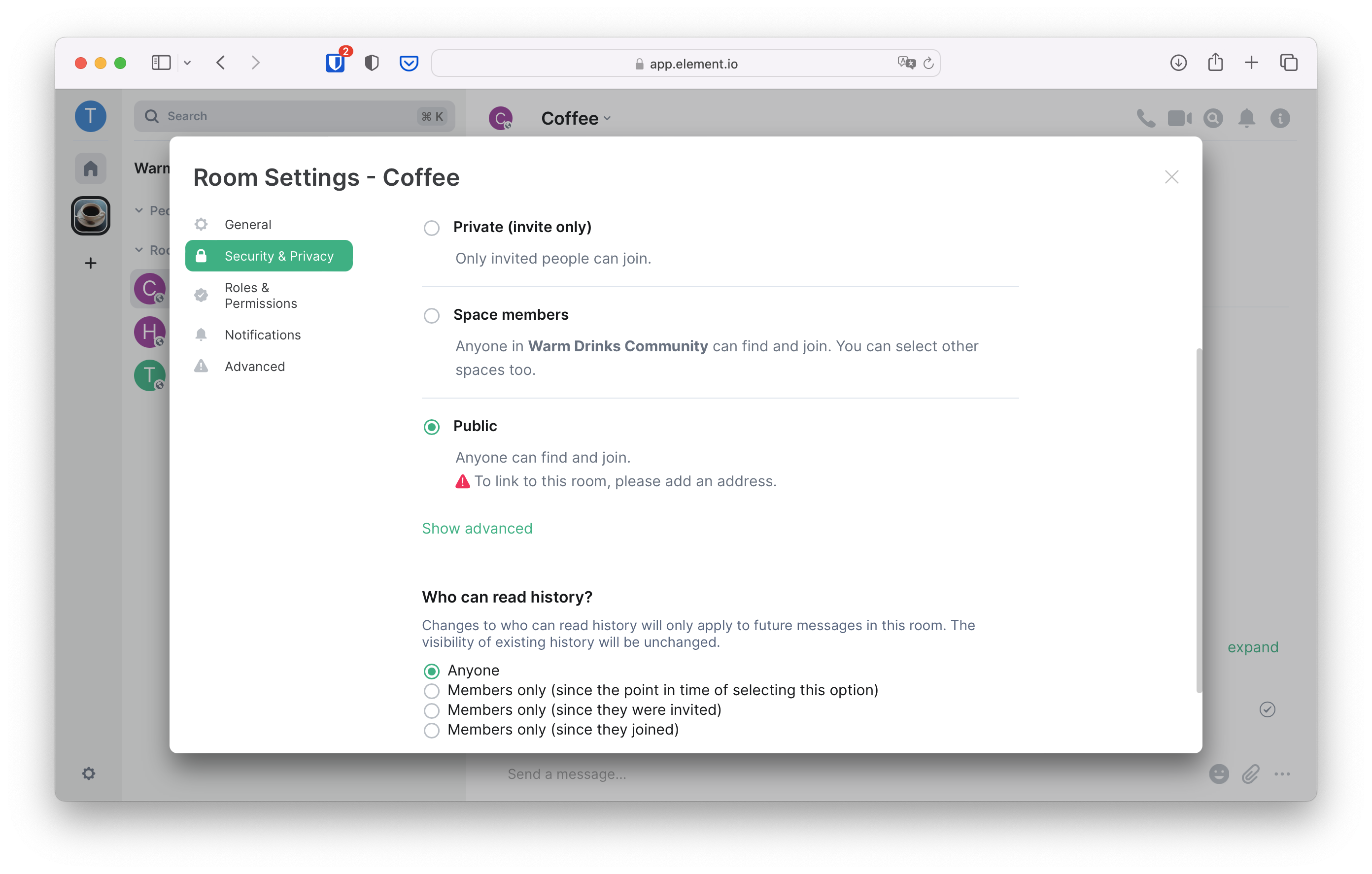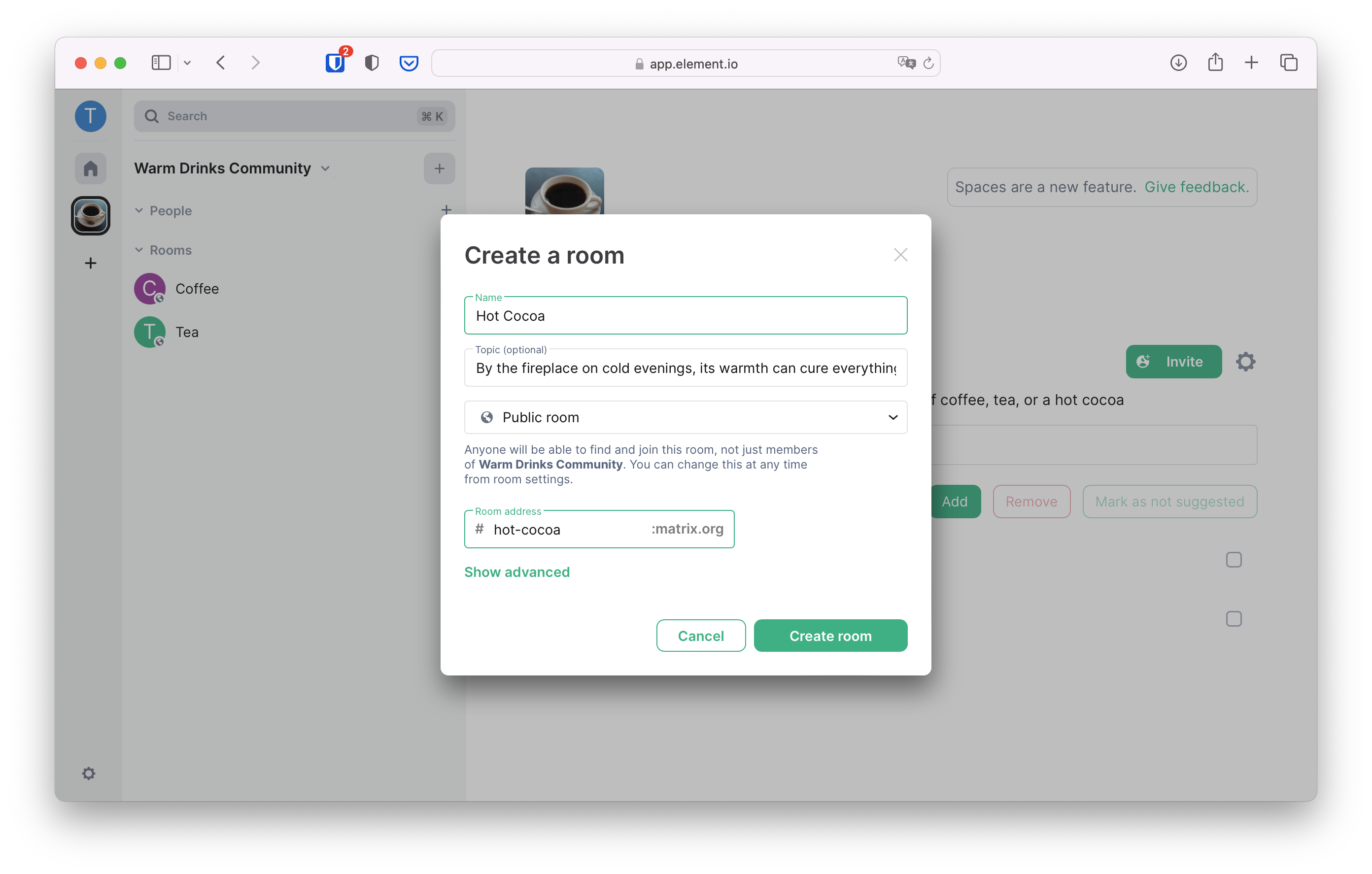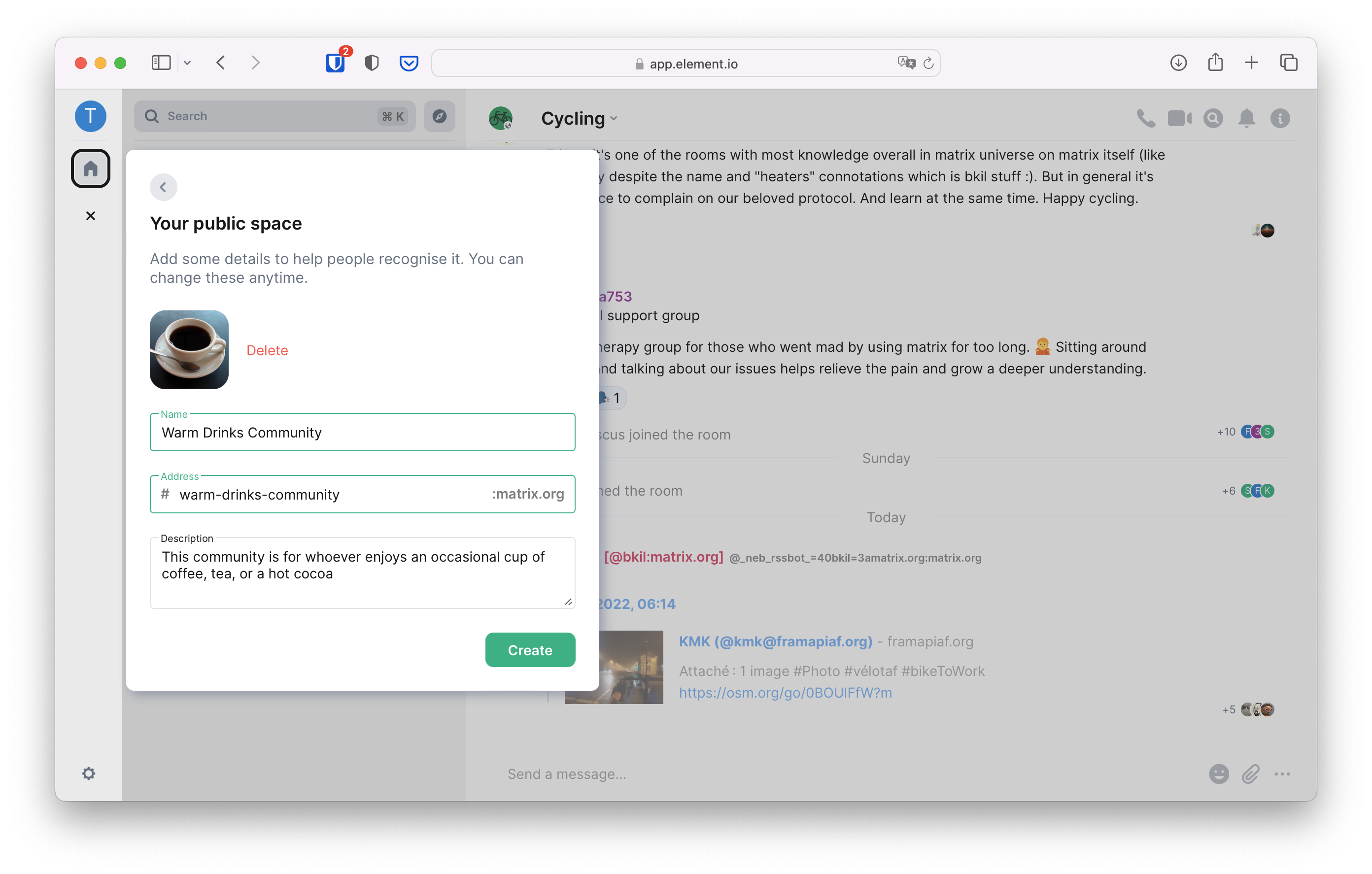 You can then add a couple of rooms to get started with the basics... and voilĂ , you now have a community on Matrix!